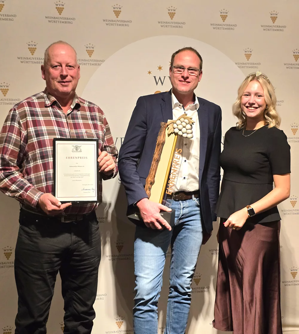 Großer Grund zur Freude: Für ihre herausragende Qualität und Gesamtleistung im Jahr 2025 wurden die Bottwartaler Winzer bei der Württembergischen Landesprämierung mit dem Ehrenpreis ausgezeichnet.