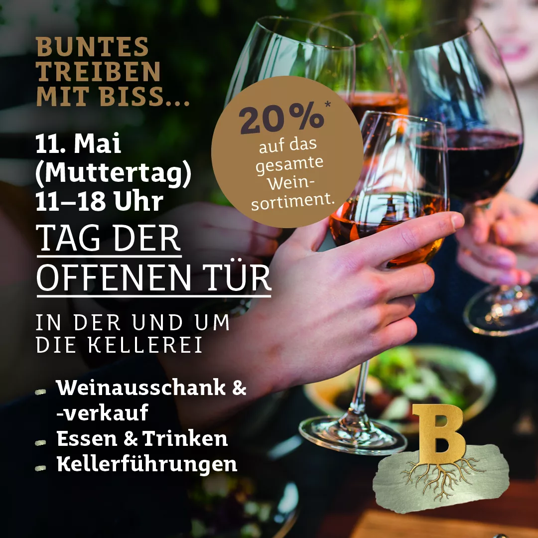 Prickelndes zum Muttertag: Weinausschank & -verkauf, leckeres Essen und spannende Kellerführungen – jede Mutter erhält beim Einkauf ein kleines Geschenk!